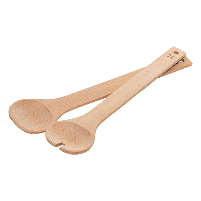 Servírovací set Basic salát se skládá ze dvou salátových lžiček o délce 30 cm. Je vyrobena z bukového dřeva, které pochází ze zodpovědně obhospodařovaných lesů. Buk je tvrdé a odolné dřevo, a proto jsou výrobky vyrobené z tohoto dřeva považovány za odolné a odolné. Lžíce nejsou vhodné do myčky.