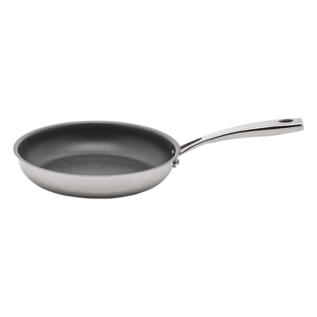 Kvalitní třívrstvá pánev z řady Premium Line je vyrobena z chromniklové oceli 18/10. Interiér je pokryt švýcarským nepřilnavým povrchem DURIT by ILAG s měděným páskem, který umožňuje přípravu jídel s minimálním použitím oleje, tuku nebo másla. Pánev má průměr 280 mm a hloubku 46 mm. Má feromagnetické dno a je proto vhodný pro všechny typy varných desek...