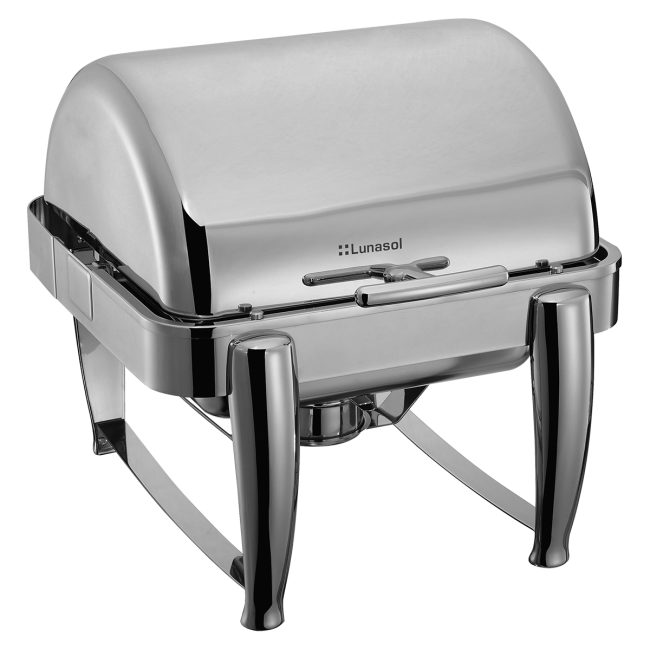 Chafing je vyroben z vysoce kvalitní 18/10 chrom niklové oceli. Vysokého lesku na povrchu je dosaženo vícenásobným leštěním. Slouží k ohřevu jídel a je ideální volbou pro bufety a catering. Chafing splňuje nejvyšší hygienické požadavky gastronomických provozoven. Dodává se také se dvěma nádobami na hořákovou pastu.