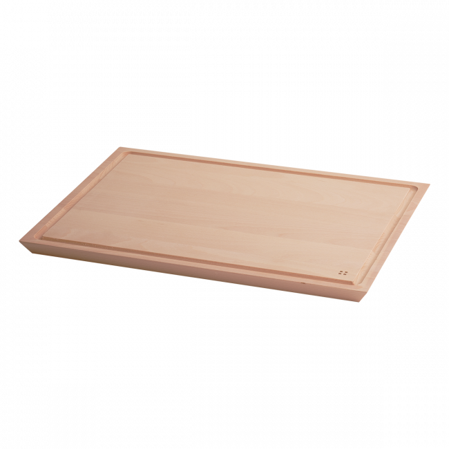 • Dřevěné prkénko bylo vyrobeno s drážkou na okraji, která slouží ke sběru tekutiny z potravin. Deska je vyrobena z bukového dřeva v matném vzhledu a v obdélníkovém tvaru. Může sloužit i jako servírovací tác. Deska není vhodná do myčky ani mikrovlnné trouby.