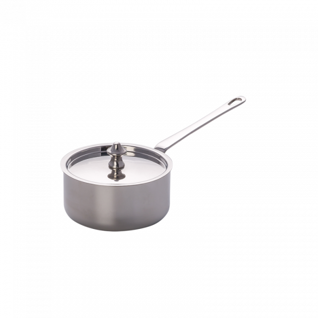 Kvalitní kastrol se sendvičovým dnem zajišťuje perfektní distribuci tepla. Vnější lesklý povrch kastrolu s profesionální rukojetí přináší nadčasovou eleganci. Vnitřní povrch je vyroben z nerezové oceli. Rajče Lunasol má průměr 14 cm a je ideální pro přípravu omáček. Víko je součástí balení.