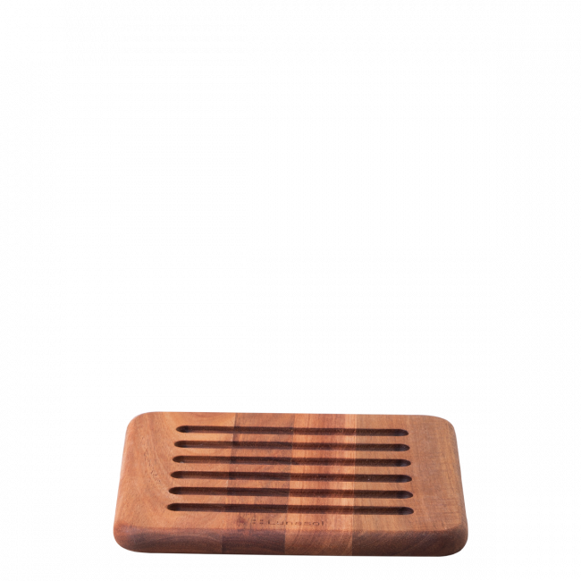 Praktická deska na krájení chleba nebo pečiva se skládá ze dvou částí. Odnímatelná mřížka a spodní nádoba na drobky. Když na něj nakrájíte něco, co drobky, drobky spadnou do nádoby a neskončí na pracovní desce ani na zemi. Výrobek je vyroben z tvrdého teakového dřeva, které se vyznačuje vysokou odolností proti vlhkosti.