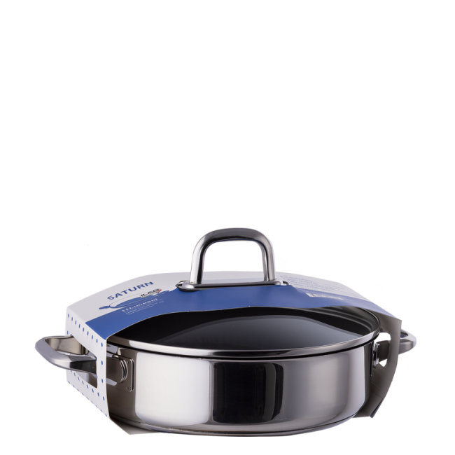 Pánev Saturn vyniká především díky unikátní technologii vnitřní povrchové úpravy. Je to ILAG XERADUR 2 s kovovým efektem, který je vysoce odolný proti oděru a korozi. Zkouška adheze prokázala, že vejce neshořela ani při teplotě 300 °C. Řada Saturn je navržena v nadčasovém designu s velkými praktickými rukojeťmi, vhodnými pro všechny typy varných desek, z...