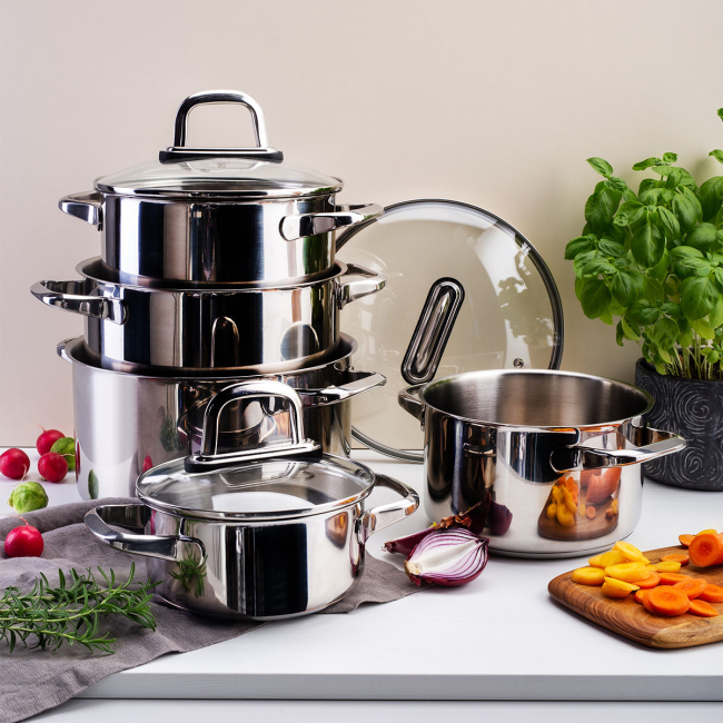 Pro hrnce a pánve lze zakoupit samostatné kryty, přičemž je třeba vzít v úvahu průměrnou hodnotu. Víčka jsou vyrobena ze skla, s parním ventilem a praktickou velkou rukojetí, která je zespodu podložena silikonem. Pro riziko průniku vody doporučujeme mýt ručně, ne v myčce.