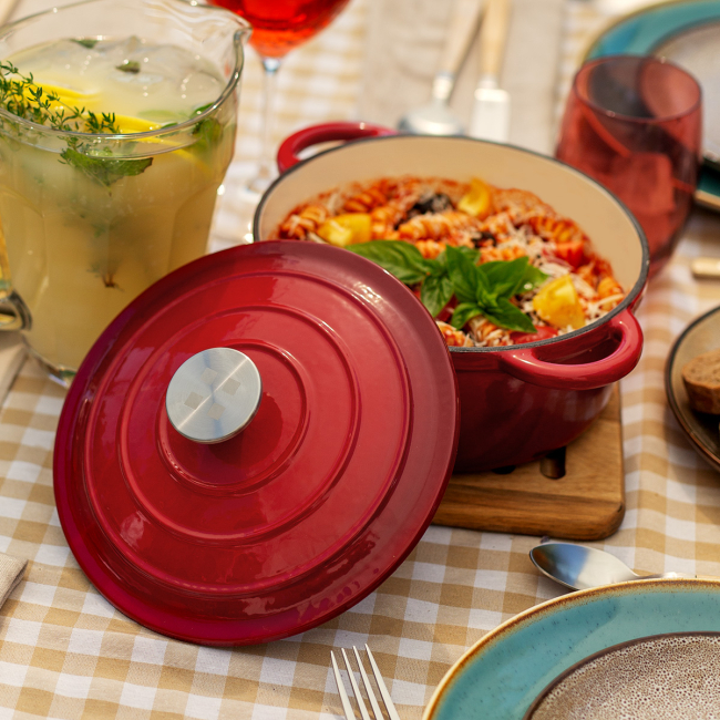 Ideální pro pečení, dušení, vaření a pečení. Vhodné pro všechny typy varných desek a v troubě. Výhody vysoce kvalitní litiny: - vynikající tepelná vodivost. Rychle se zahřívá a rovnoměrně rozvádí teplo po celém povrchu hrnce. Udržuje teplotu i po vypnutí zdroje tepla, takže jídlo zůstává teplé až do servírování.- odolnost vůči vysokým teplotám až do 260...