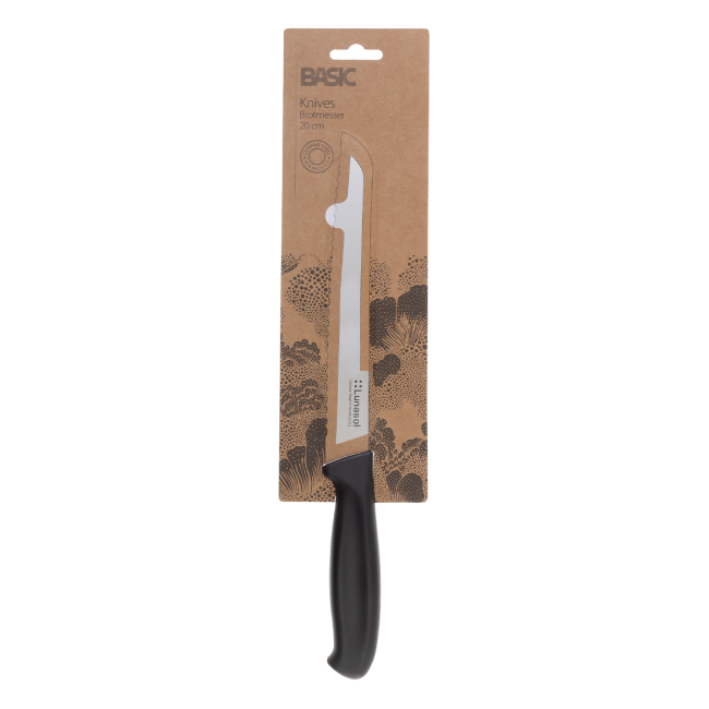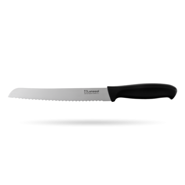 Nůž Lunasol je vhodný na krájení chleba a pečiva. Prémiový nůž má kovanou čepel o délce 20 cm a bílou rukojeť. Nůž má spolehlivou vrubovou čepel z německé oceli. Nůž je vhodný do průmyslové myčky.