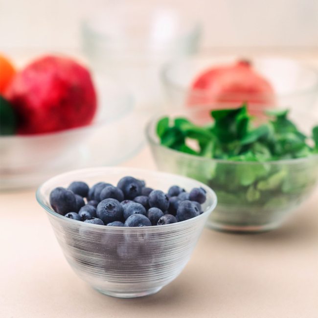 Sada průhledných skleněných mělkých desek z řady Basic Chic Glas má jemnou strukturu elegantních letokruhů. Díky svému průměru 30 cm je talíř vhodný jako základový talíř, ale také jako servírovací talíř pro hlavní chody. Sada desek Basic Chic Glass je vhodná jak pro průmyslové myčky nádobí, tak pro mikrovlny.