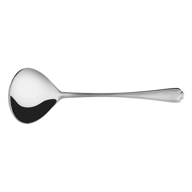 Vlhká lžíce Chateau v lesklém vzhledu je vyrobena z kvalitní chromniklové oceli 18/10 v tloušťce 2,5 mm. Pro linku je typická dekorativní rukojeť v mírně rustikálním stylu. Širší spodní část rukojeti je ideální pro personifikaci, jako je gravírování loga. Vlhká lžíce Chateau je vhodná do průmyslové myčky.