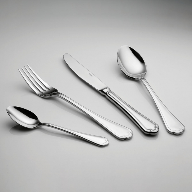 • Dezertní vidlice Chateau v lesklém vzhledu je vyrobena z kvalitní chromniklové oceli 18/10 o tloušťce do 3 mm. Pro linku je typická dekorativní rukojeť v mírně rustikálním stylu. Širší spodní část rukojeti je ideální pro personifikaci, jako je gravírování loga. Dezertní vidlička Chateau je vhodná do průmyslové myčky.