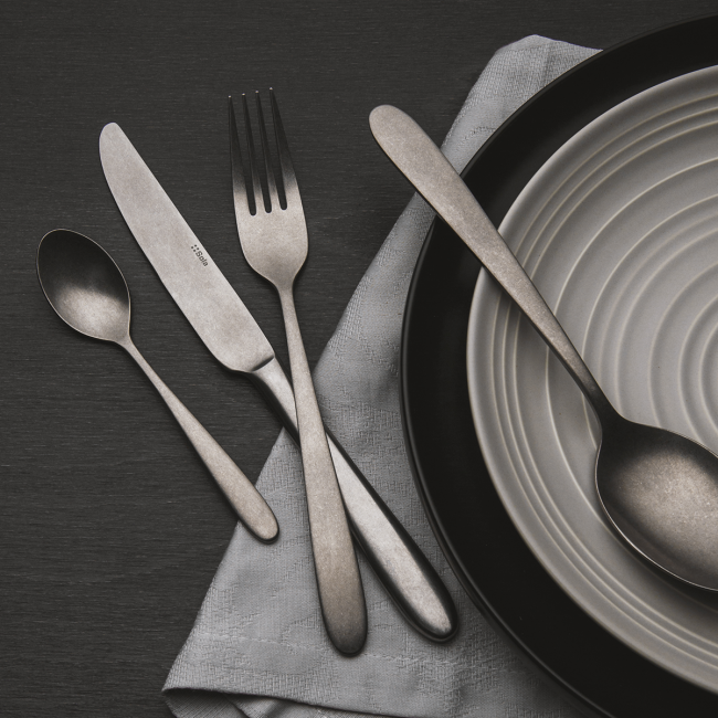 Dezertní nůž základní řady Alpha, ozvláštněný vintage finišem zvaným Stone Wash, zkrášlí podávání jídel ve vašem podniku. Vyrobili jsme ho z kvalitní chromniklové oceli 18/10. Je vhodný do průmyslové myčky.