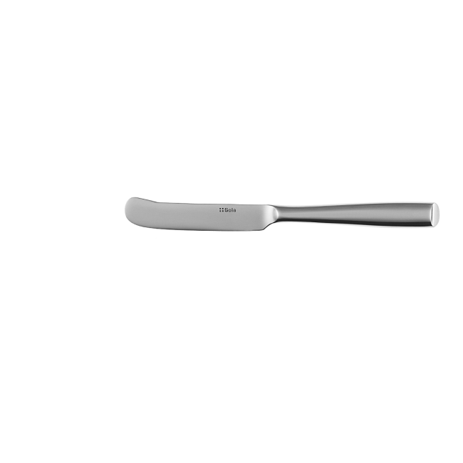 Dezert Vail nůž s lesklým povrchem a tlustou oválnou rukojetí se šikmým řezem na jeho konci. Čistá vyvážená linie pro pohodlný a pevný úchop. Čepel a rukojeť z nerezové chromové oceli 18/0. Vhodné do průmyslové myčky.