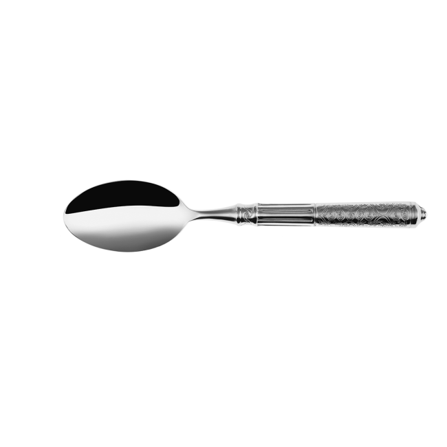 Lžíce s dutou rukojetí San Remo z řady Platinum line je vyrobena z vysoce kvalitní chromniklové oceli 18/10. Rukojeť je z poloviny zdobena květinovým vzorem a z poloviny drážkami. Lžíce San Remo je vhodná do průmyslové myčky.
