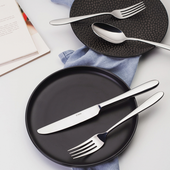 Turínský dezertní nůž s plnou rukojetí je vyroben z chromové oceli 18/0 v lesklém vzhledu díky odolnosti čepele. Nůž má kulatý konec rukojeti. Turínský dezertní nůž je vhodný do průmyslové myčky.