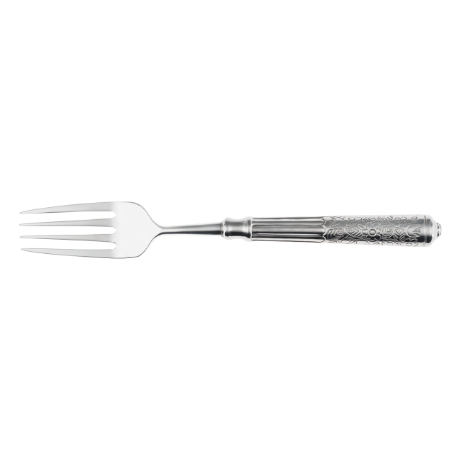 Dutá vidlice rukojeti San Remo z řady Platinum line je vyrobena z vysoce kvalitní chromniklové oceli 18/10. Rukojeť je z poloviny zdobena květinovým vzorem a z poloviny drážkami. Vidlice San Remo je vhodná do průmyslové myčky.