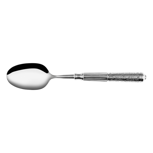 Lžíce s dutou rukojetí San Remo z řady Platinum line je vyrobena z vysoce kvalitní chromniklové oceli 18/10. Rukojeť je z poloviny zdobena květinovým vzorem a z poloviny drážkami. Lžíce San Remo je vhodná do průmyslové myčky.