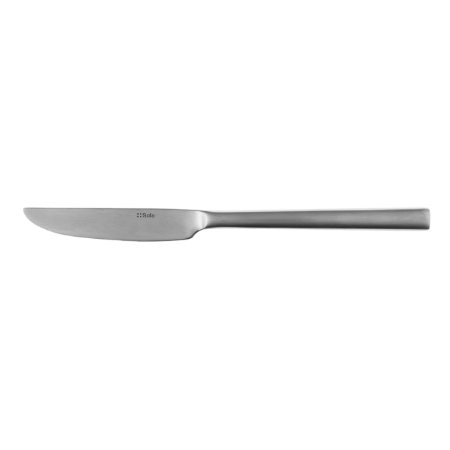 Dezertní nůž s plnou rukojetí v matné verzi je vyroben z chromové oceli 18/0, ale jeho čepel je lesklá. Je typický svým minimalistickým designem se čtvercovým povrchem a ergonomickým tvarem. Řada příborů Living je jednou z nejprodávanějších řad.