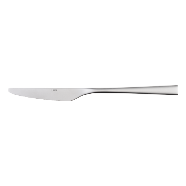 Dezertní nůž s plnou City rukojetí se vyznačuje čistými liniemi a pro odolnost čepele je vyroben z chromové oceli 18/0. Má vysoce leštěný vzhled. Nůž City je vhodný do průmyslové myčky.