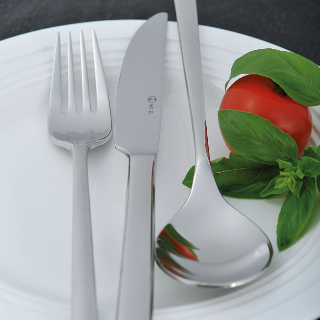 Nůž s plnou rukojetí nejprodávanější řady Living je vyroben z chromové oceli 18/0 pro odolnost čepele. Nůž se vyznačuje lesklým vzhledem, minimalistickým designem se čtvercovým povrchem a ergonomickým tvarem. Nůž Living je vhodný do průmyslové myčky nádobí.