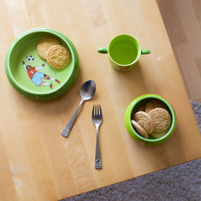 Dětský nůž v matném vzhledu je vhodný pro gastronomická zařízení a předškolní zařízení. Ergonomicky tvarovaná rukojeť nože přesně zapadá do dětské ruky. Vzhledem k odolnosti čepele je nůž vyroben z chromové oceli 18/0. Je vhodný pro průmyslové myčky nádobí.