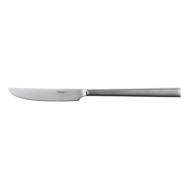 Nůž s plnou rukojetí v matném provedení je vyroben z chromové oceli 18/0, ale jeho čepel je lesklá. Je typický svým minimalistickým designem se čtvercovým povrchem a ergonomickým tvarem. Řada příborů Living je jednou z nejprodávanějších řad.