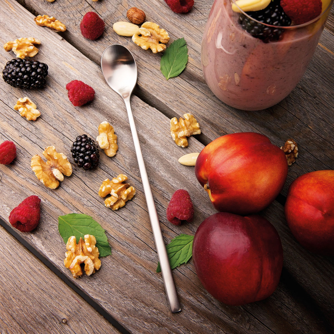 Lžíce Living limonáda/latte v celomatném provedení je vyrobena z kvalitní chromniklové oceli 18/10 o tloušťce 4,4 mm. Lžíce se vyznačuje minimalistickým designem se čtvercovým povrchem a ergonomickým tvarem. Limonádová lžička Living je vhodná do průmyslové myčky.