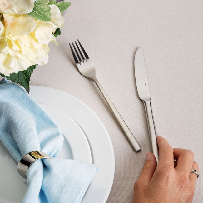 Dezertní vidlička Living v celomatné verzi je vyrobena z kvalitní chromniklové oceli 18/10 o tloušťce 5 mm. Vidlice se vyznačuje minimalistickým designem se čtvercovým povrchem a ergonomickým tvarem. Vidlička na dezert Living je vhodná do průmyslové myčky.