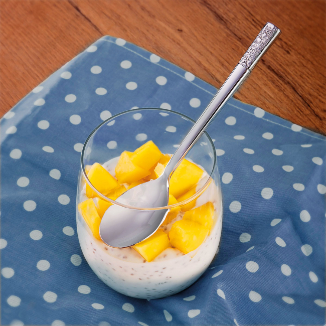 • Dezertní lžíce Fiori v lesklém vzhledu z řady Platinum line je vyrobena z kvalitní chromniklové oceli 18/10 o tloušťce 5 mm. Dezertní lžíce s dutou rukojetí patří do příborů vysoké třídy. Jemný vzor na konci rukojeti dotváří eleganci příborů. Dezertní lžíce Fiori je vhodná do průmyslové myčky.