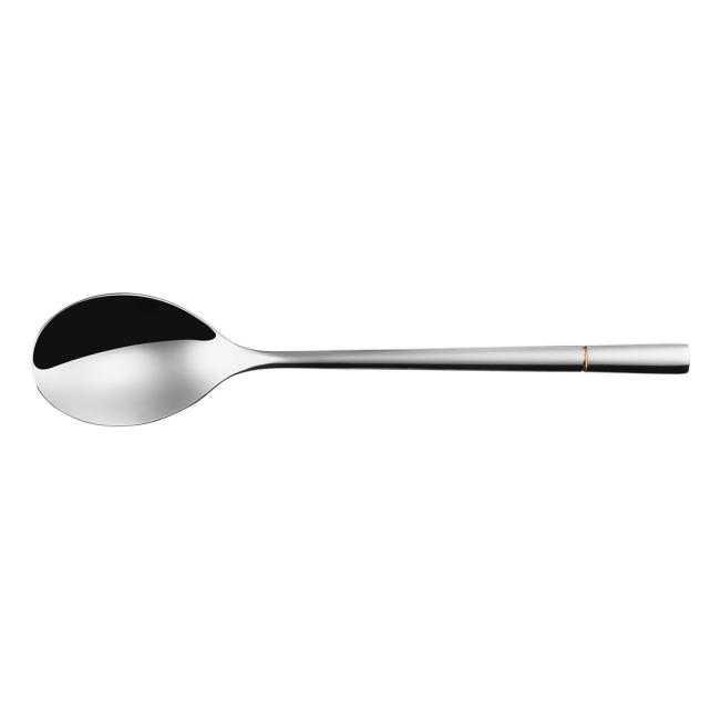 Lžíce Luxus se zlatou drážkou je vyrobena z kvalitní chromniklové oceli 18/10 v tloušťce 5,8 mm a v lesklém vzhledu. Zlatá drážka se aplikuje na drážku na rukojeti pomocí technologie PVD. Lžíce Luxus je vhodná do průmyslové myčky.