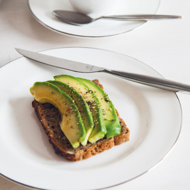 • Dezertní nůž s dutou rukojetí Montevideo v pískovaném vzhledu z řady Platinum line je vyroben z kvalitní chromniklové oceli 18/10 a patří do příborů vysoké třídy. Pro odolnost je čepel nože vyrobena z chromové oceli 18/0. Po celé délce rukojeti se táhne jemná pískovaná čára. Dezertní nůž Montevideo je vhodný do průmyslové myčky nádobí.