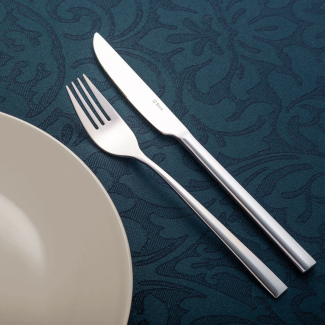 Vidlice London v lesklém vzhledu je vyrobena z kvalitní chromniklové oceli 18/10 o tloušťce 3,5 mm. Typický je zejména minimalistickým designem se čtvercovým koncem rukojeti. Vidlice London je vhodná i do průmyslové myčky.