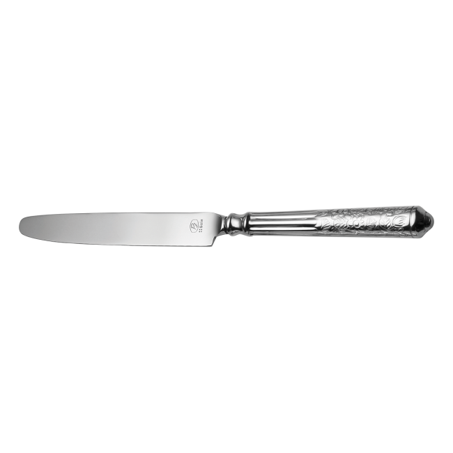 • Dezertní nůž San Remo s dutou rukojetí z řady Platinum line je vyroben z kvalitní chromniklové oceli 18/10. Rukojeť je z poloviny zdobena květinovým vzorem a z poloviny drážkami. Pro odolnost je čepel nože vyrobena z chromové oceli 18/0. Nůž San Remo je vhodný do průmyslové myčky nádobí.