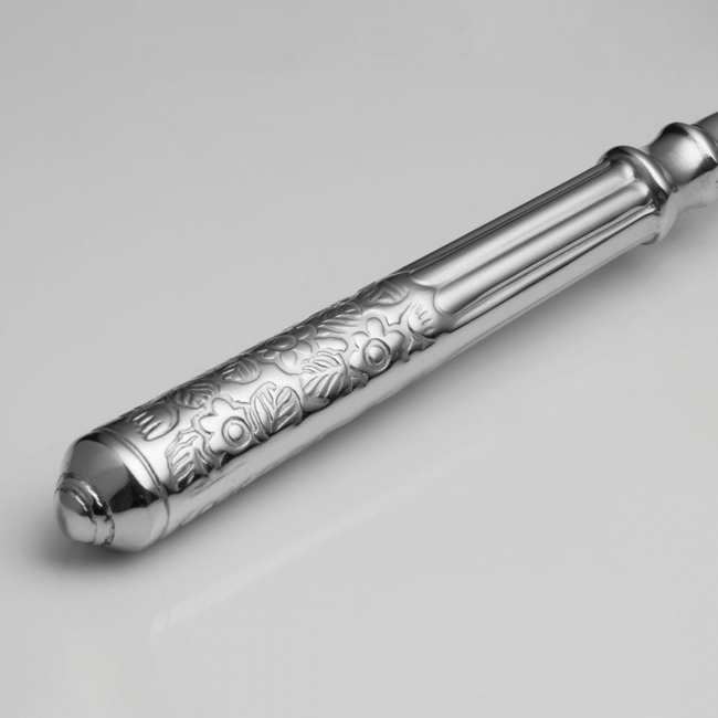 Dezertní nůž San Remo s dutou rukojetí z řady Platinum line je vyroben z kvalitní chromniklové oceli 18/10. Rukojeť je z poloviny zdobena květinovým vzorem a z poloviny drážkami. Pro odolnost je čepel nože vyrobena z chromové oceli 18/0. Nůž San Remo je vhodný do průmyslové myčky nádobí.