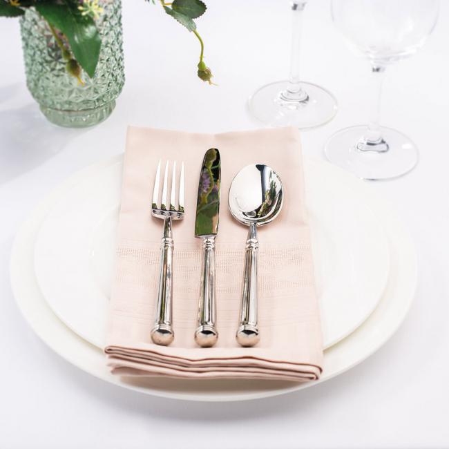 Dezertní nůž Royal je vyroben z kvalitní chromniklové oceli 18/10 v lesklém vzhledu. Díky zajímavé výzdobě rukojeti patří do příborů vysoké třídy. Kvůli odolnosti čepele je čepel nože vyrobena z chromové oceli. Rukojeť je po celé délce zdobena výraznými liniemi. Dezertní nůž Royal je vhodný do průmyslové myčky.