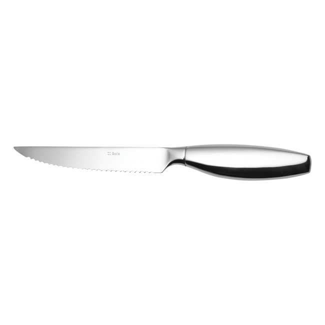 Moderní steakový nůž Touch me v lesklém provedení je vyroben z chromové oceli 18/0. Nůž má dutou ergonomicky tvarovanou rukojeť se 130 mm dlouhou čepelí s vroubkováním po celé délce. Je vhodný do průmyslové myčky.