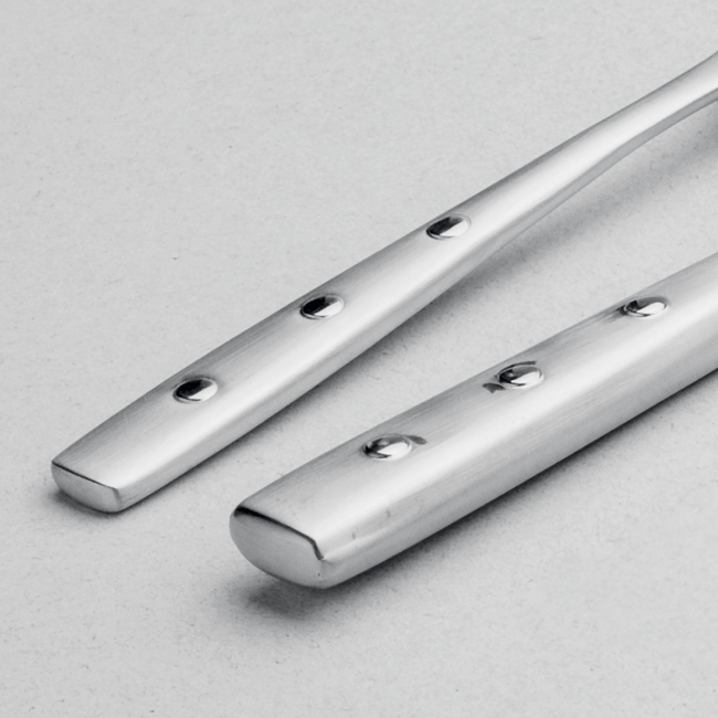 Steaková vidlice z řady Bistro v matném vzhledu je vyrobena z kvalitní chromniklové oceli 18/10 v tloušťce až 5 mm. Na rukojeti je imitace nýtů ve vysokém lesku. Vidlička na steak Bistro je vhodná do průmyslové myčky.