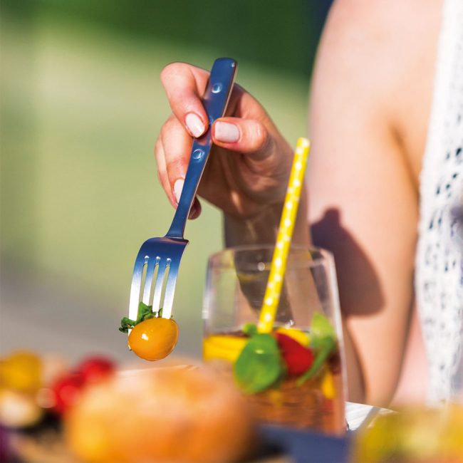 Steaková vidlice z řady Bistro v matném vzhledu je vyrobena z kvalitní chromniklové oceli 18/10 v tloušťce až 5 mm. Na rukojeti je imitace nýtů ve vysokém lesku. Vidlička na steak Bistro je vhodná do průmyslové myčky.