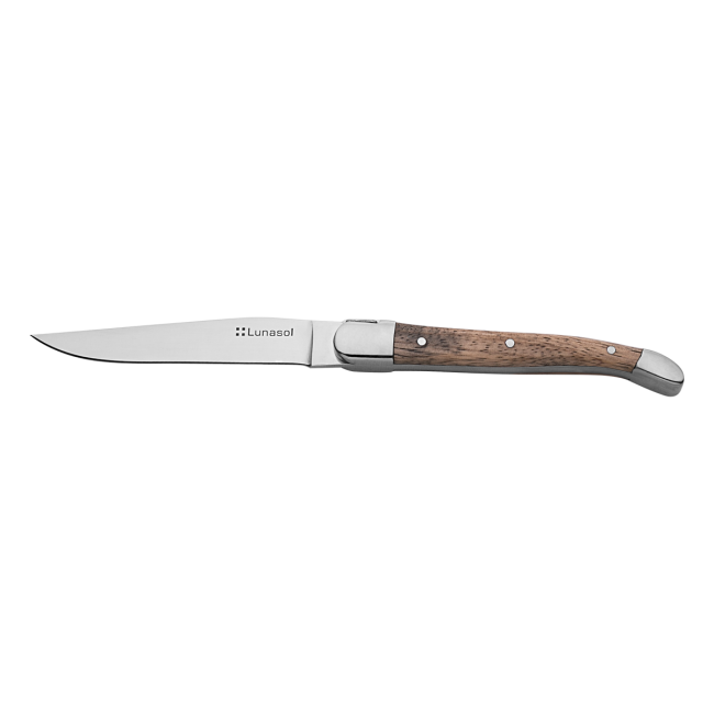 Masivní steakový nůž Basic Country je vyroben z kvalitní chromové oceli 18/0 s dřevěným obložením. Čepel nože prochází celou rukojetí, což zajišťuje vysokou odolnost a pevnost nože. Čepel je nabroušená jako klasický řezací nůž - bez zubů. Vzhledem k dřevěnému obložení není vhodný do myčky nádobí.