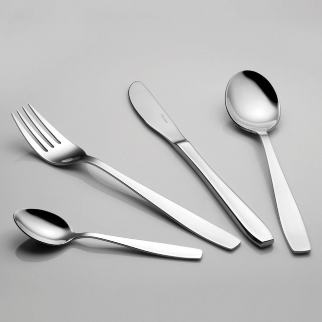 Dezertní lžíce Europa II v lesklém vzhledu se vyznačuje jednoduchým tvarem a čtvercovým koncem rukojeti. Lžíce je vyrobena z chromové oceli 18/0 o tloušťce 2 mm. Je ideální volbou pro velké vysokozátěžové tovární cateringové provozy. Dezertní lžíce Europa II je vhodná do průmyslové myčky.
