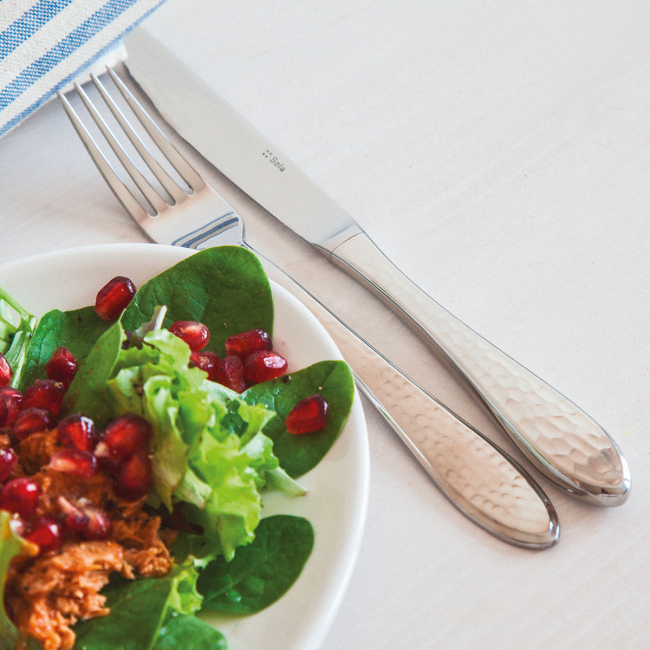 Dezertní nůž Queen Hollow Handle s dutou rukojetí je vyroben z vysoce kvalitní chromniklové oceli 18/10 v lesklém vzhledu. Jeho čepel je však vyrobena z chromové oceli 18/0 pro odolnost. Klasické tvary doplňuje elegantní měkké zatloukání na celé rukojeti. Nůž Queen je vhodný do průmyslové myčky.