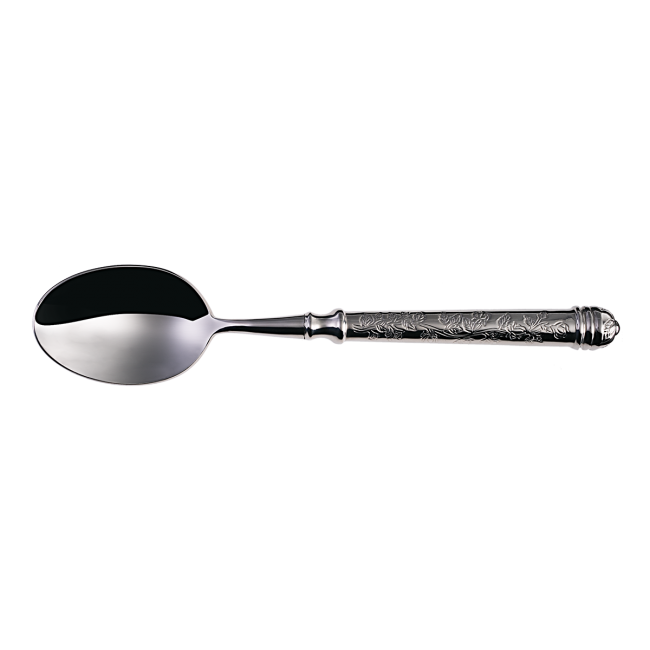 Lžíce na kávu Santiago s dutou rukojetí z řady Platinum line je vyráběna ručně z kvalitní chromniklové oceli 18/10. Rukojeť je zdobena květinovým vzorem, díky čemuž se skvěle hodí do interiérů s rustikálním vybavením. Je vhodný do průmyslové myčky.