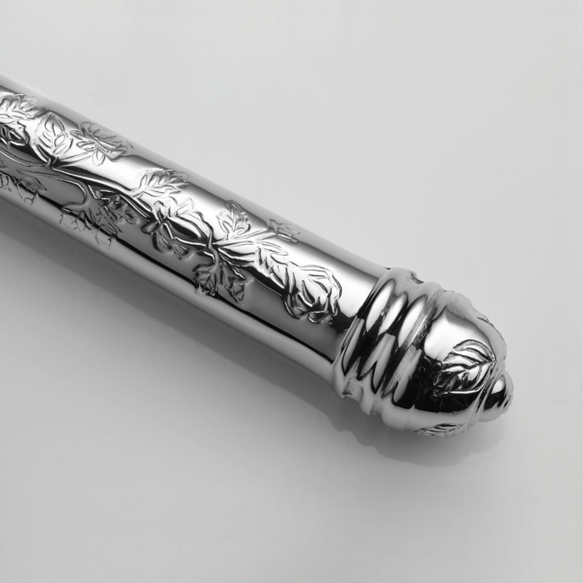 Dutá vidlička na mouku Santiago je vyrobena ručně z vysoce kvalitní chromniklové oceli 18/10. Rukojeť je zdobena květinovým vzorem, díky čemuž se skvěle hodí do interiérů s rustikálním vybavením. Je vhodný do průmyslové myčky.