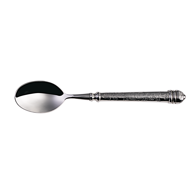 Lžíce s dutou rukojetí Santiago z řady Platinum line je vyrobena ručně z vysoce kvalitní chromniklové oceli 18/10. Rukojeť je zdobena květinovým vzorem, díky čemuž se skvěle hodí do interiérů s rustikálním vybavením. Je vhodný do průmyslové myčky.