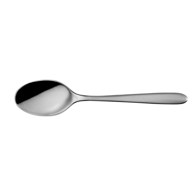 Dezert /nabídková lžička Callisto CR v lesklém vzhledu má kulatý konec rukojeti. Lžíce je vyrobena z chromové oceli 18/0 o tloušťce 2 mm. Dezertní lžíce Callisto CR je ideální pro tovární cateringové provozy s vysokým zatížením a vhodná do průmyslové myčky nádobí.