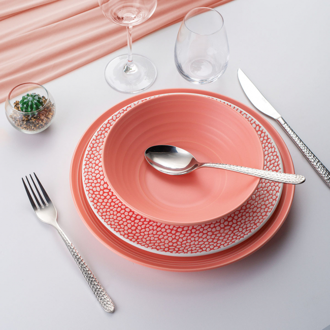 Nůž Callisto Ice v lesklém vzhledu je vyroben z chromové oceli 18/0 díky odolnosti čepele. Povrch rukojeti je zatlučený. Nůž Callisto Ice je vhodný pro průmyslové myčky nádobí.