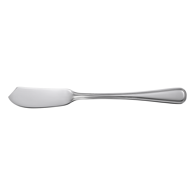 Nůž na máslo Avalon v lesklém vzhledu je vyroben z chromové oceli 18/0 kvůli odolnosti čepele. Kulatý konec rukojeti nože je zdoben jemnou linkou na okraji. Nůž na máslo Avalon je vhodný pro průmyslové myčky nádobí.