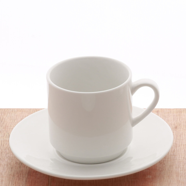 Bílý mocca šálek Lunasolu má objem 100 ml Jeho objem se počítá až po okraj. Šálek je stohovatelný a vhodný do průmyslové myčky.