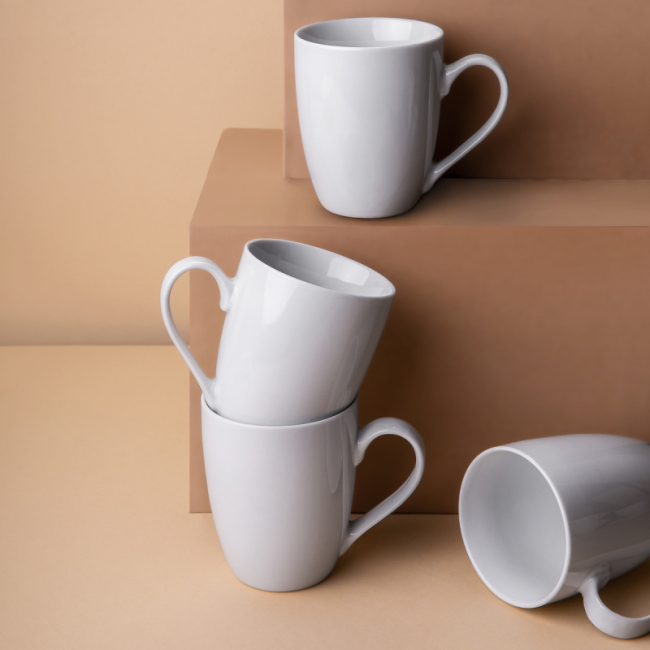 Sada porcelánových kelímků z řady Basic vhodných na mléko, čaj nebo cappuccino. Skládá se ze 4 kusů. Univerzální vzhled bílého porcelánu ladí s každým interiérem. Je vhodný jak do myčky, tak do mikrovlnné trouby.