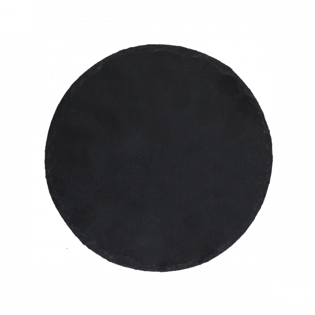Černý servírovací tác byl vyroben z břidlice v matném vzhledu a v kulatém tvaru. Není vhodný do myčky ani mikrovlnné trouby.