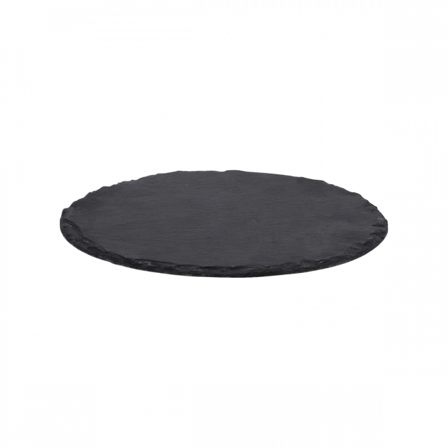 Černý servírovací tác byl vyroben z břidlice v matném vzhledu a v kulatém tvaru. Není vhodný do myčky ani mikrovlnné trouby.