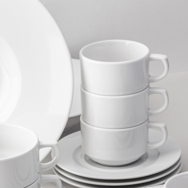 Mocca šálek z řady Hotel Inn Chic s elegantním detailem letokruhu je ideální volbou pro podávání espressa nebo ristretta. Má objem 100 ml, je stohovatelný a vhodný do myčky i mikrovlnné trouby. Doporučujeme kombinovat s podšálkem 492165.